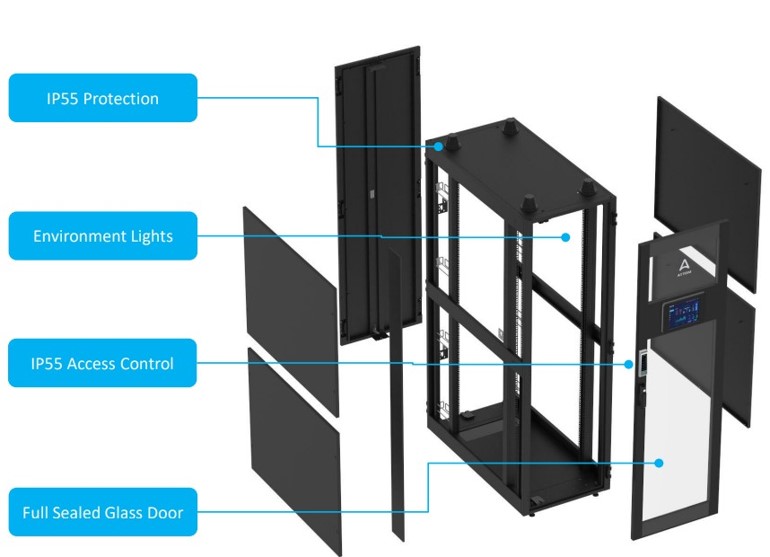 Los RACKS con protección IP55 ofrecen un Alto nivel de protección contra la entrada de polvo resistencia al agua, protección de entornos húmedos y protecciones adicionales. están diseñadas para soportar condiciones adversas y garantizar la longevidad y fiabilidad de los dispositivos alojados en su interior, y se obtiene adicionalmente una protección de agentes contaminantes es un significativo avance tecnológico que le garantiza a los data center un entorno seguro y protegido de una manera eficaz